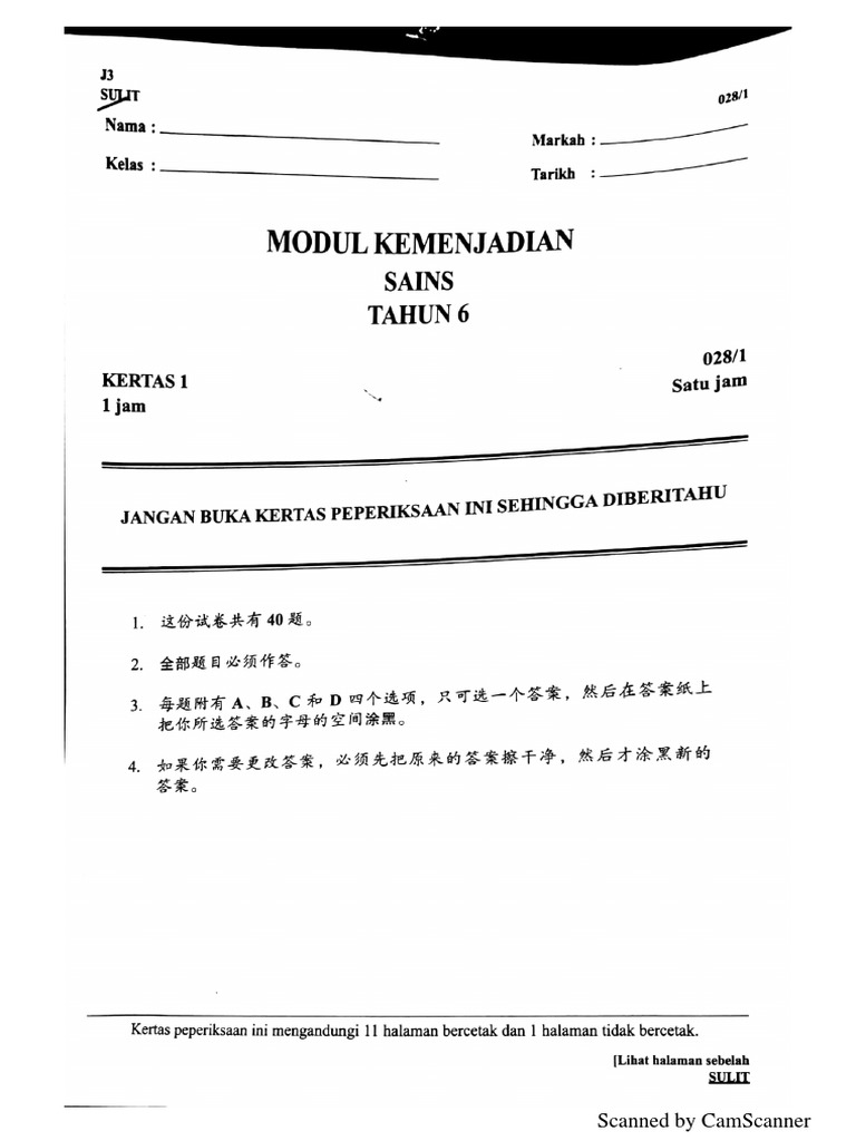 Upsr合力历年预试精选科学试卷一及试卷二 Upsr Koleksi Kertas Peperiksaan Percubaan Diagnostik Sains