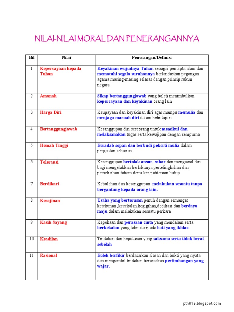 Laman Blog Pendidikan Moral 18 Nilai Universal Pendidikan Moral Kssm