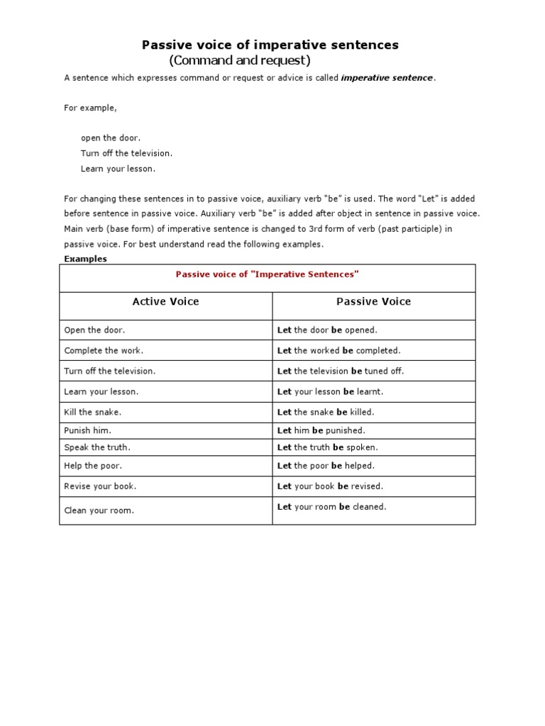 Active Voice And Passive Voice Imperative Sentence Learn In Simple Word Imperative Sentences Active Voice Active And Passive Voice