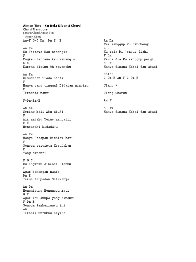 Aiman Tino Ku Rela Dibenci Official Lirik Video Chords Chordify