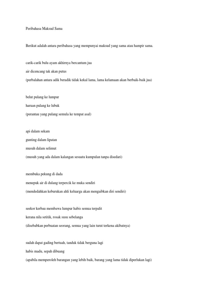 Peribahasa Maksud Sama