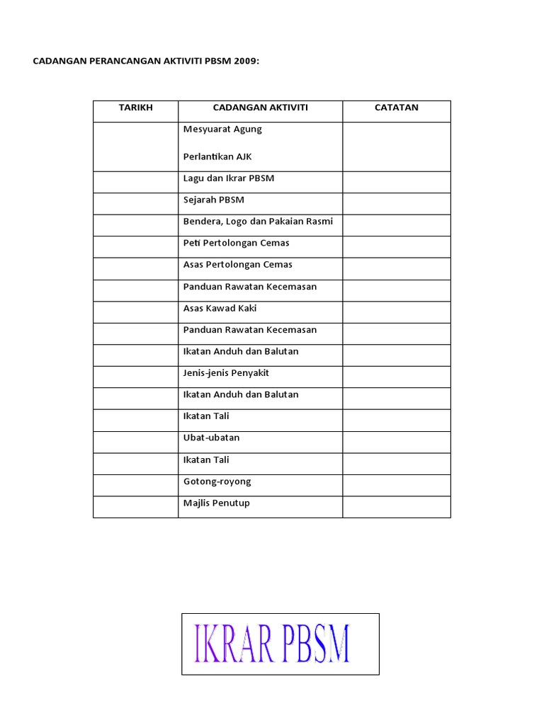 Cadangan Perancangan Aktiviti Pbsm