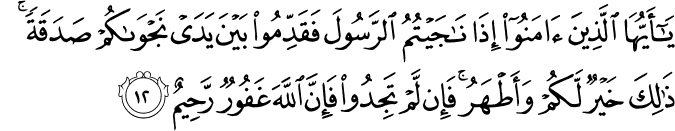 Surat Al Mujadilah Ayat 12 Tafsir Bacaan Dan Terjemahan Qs Surat Dan Ayat
