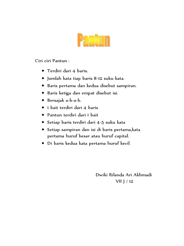 Mengidentifikasi Ciri Ciri Pantun Mikirbae Com