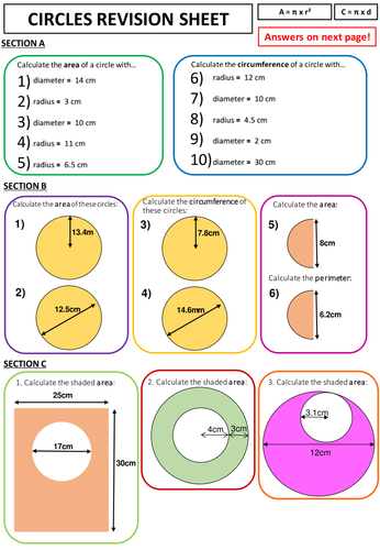 Area And Circumference Of Circles Semicircles And Compound Shapes Revision Sheet Teaching Resources