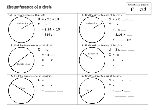 Circumference Of Circles Easy Worksheet Ks3 Teaching Resources