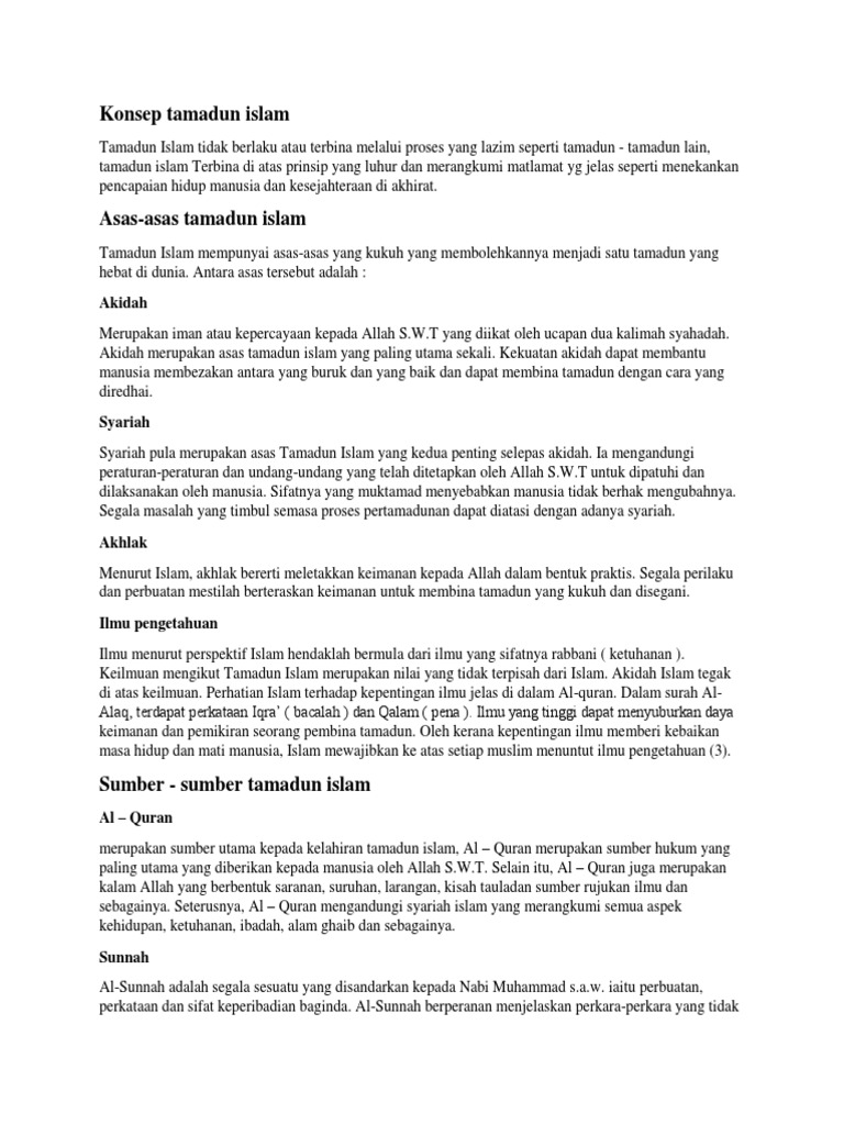 Konsep Asas Tamadun Islam 1 0 Latabelakang