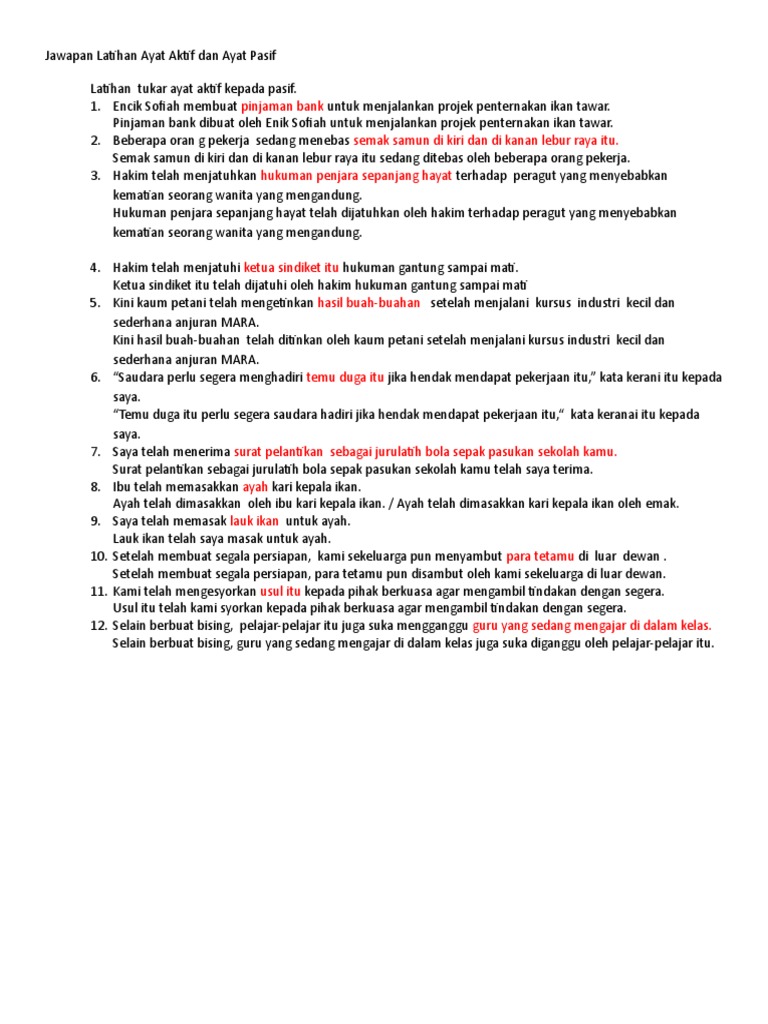 Jawapan Latihan Ayat Aktif Dan Ayat Pasif Mei 2012