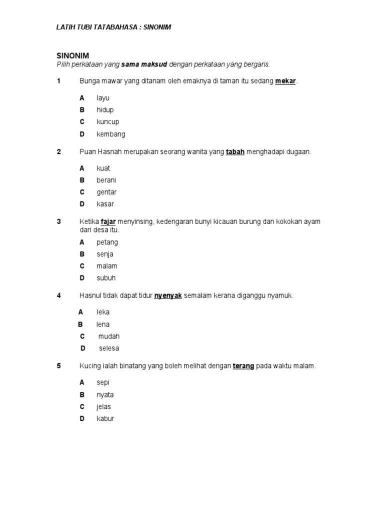 Bm Kertas 1 Tatabahasa
