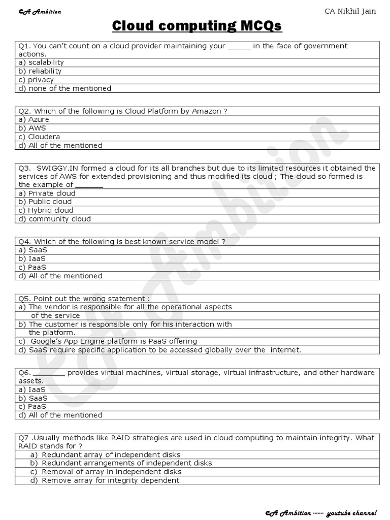 Cloud Computing Mcq Quiz Online Test 2020 Online