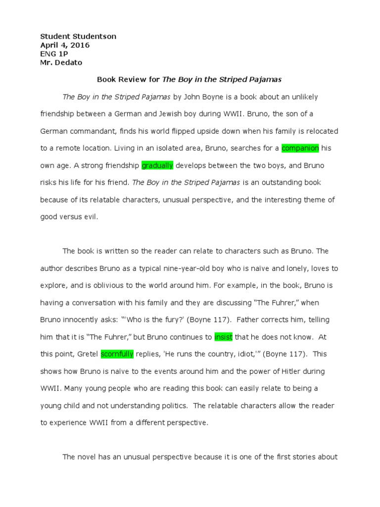 Sample Book Review The Boy In The Striped Pajamas Fiction Literature