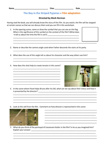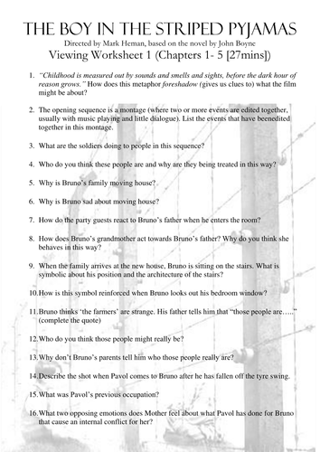 Boy In Striped Pyjamas Film Viewing Sheets Teaching Resources