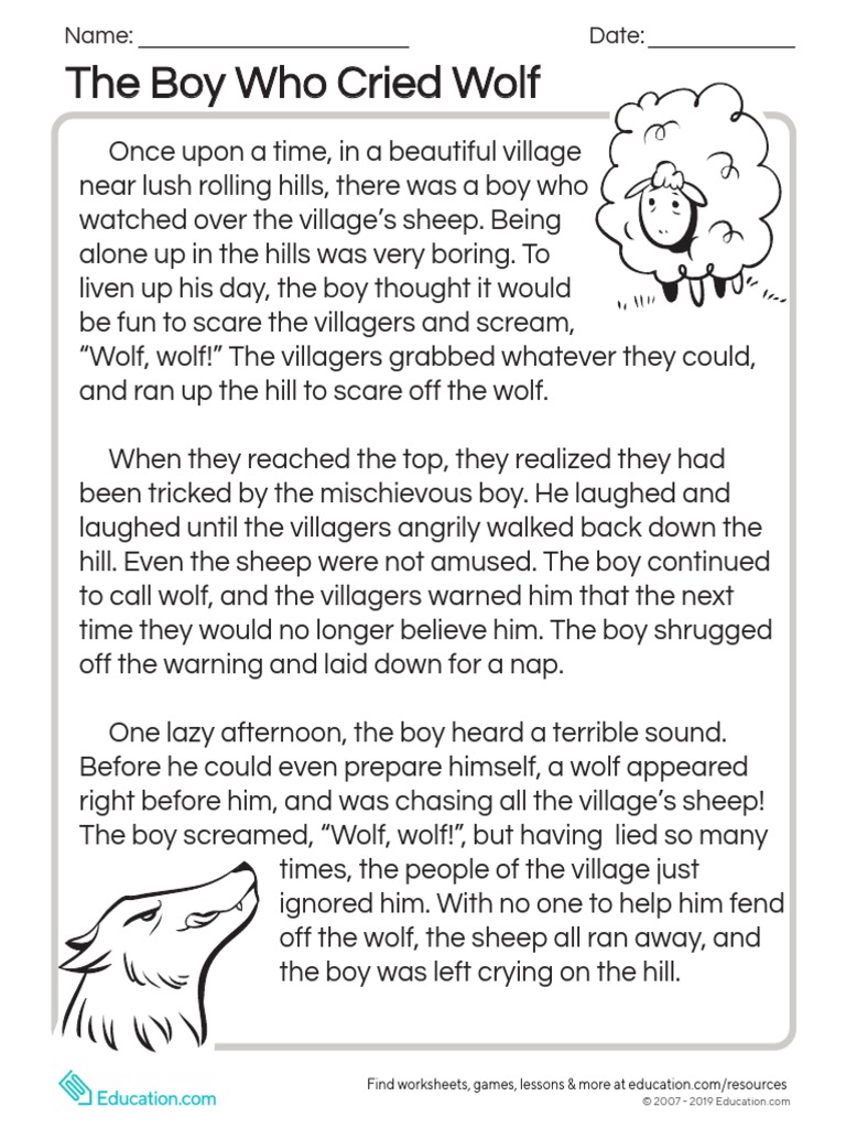 The Boy Who Cried Wolf Fables For Kids Reading Worksheets Boys Who