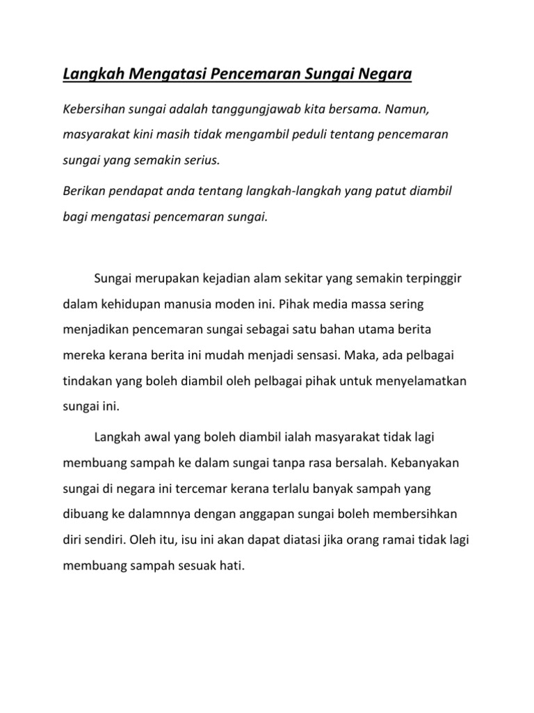 Karangan Langkah Mengatasi Pencemaran Alam Sekitar