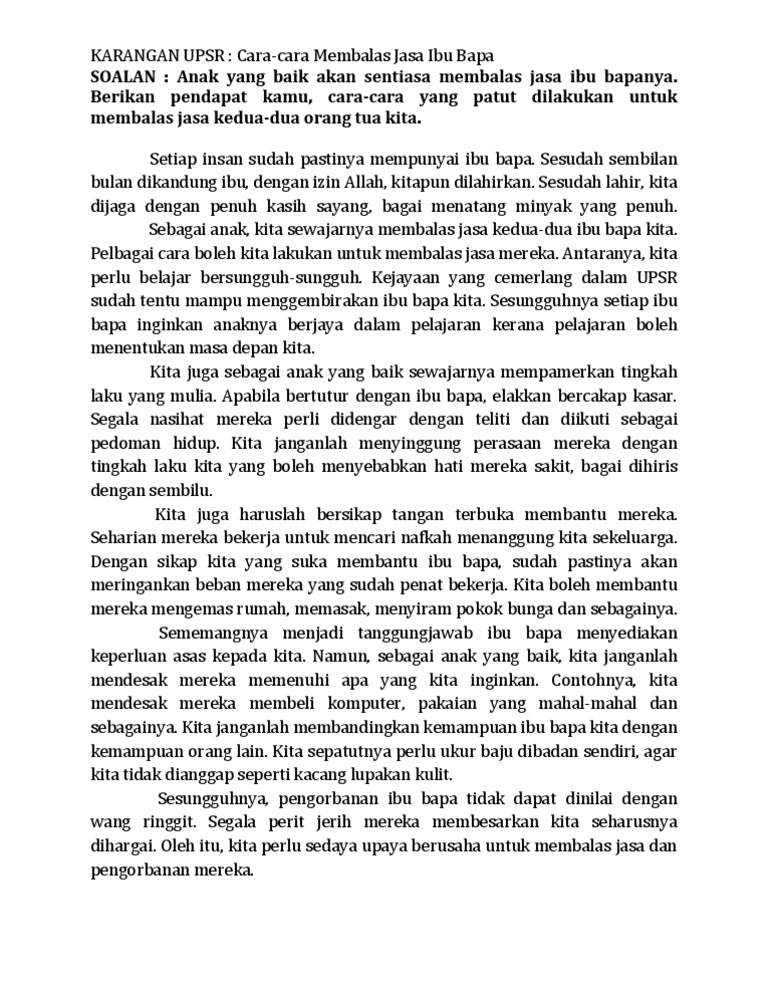 Cara Cara Membalas Jasa Ibu Bapa Karangan Upsr