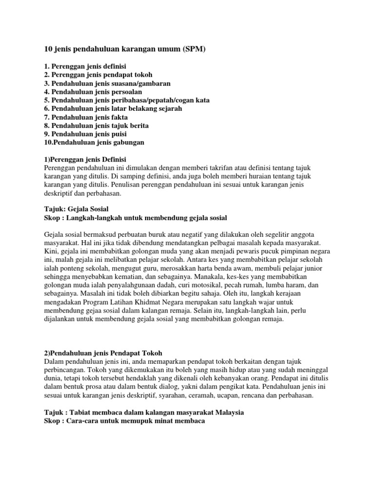 Jenis Jenis Pendahuluan Karangan Penulisan Bahasa Melayu
