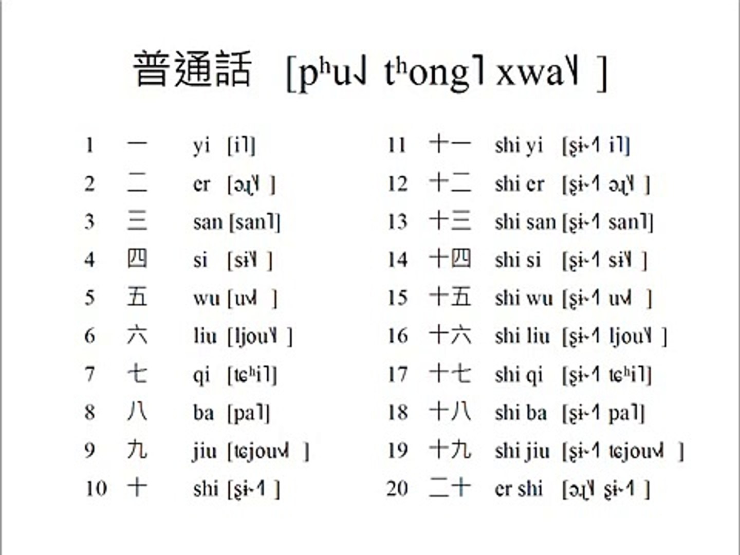 Standard Chinese Numbers 1 20 Video Dailymotion