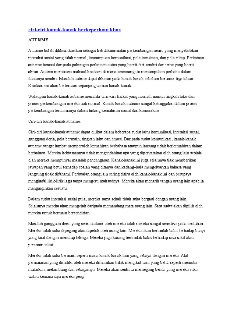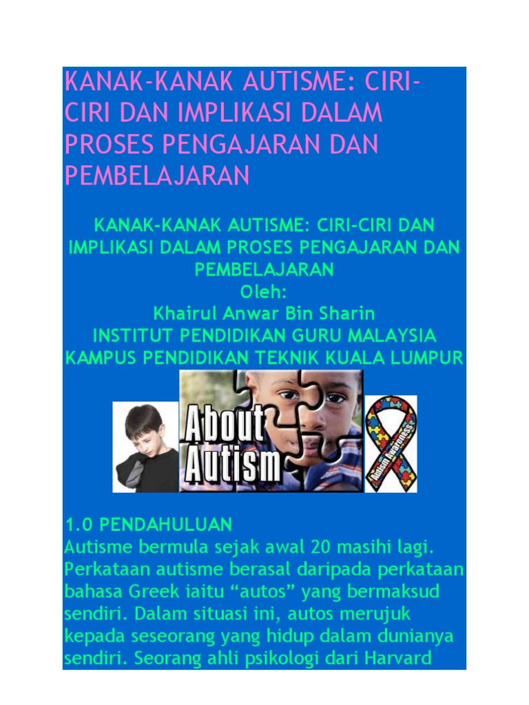 Kanak Kanak Autisme Ciri Ciri Dan Implikasi Dalam Proses Pengajaran Dan Pembelajaran