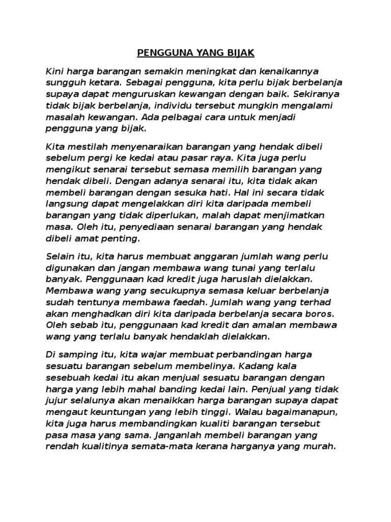 Karangan Cara Menjadi Pengguna Yang Bijak