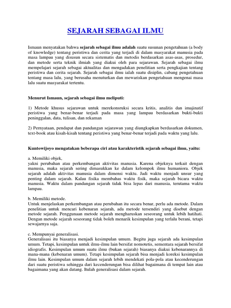 Ciri Ciri Sejarah Sebagai Ilmu Adalah Seputar Sejarah