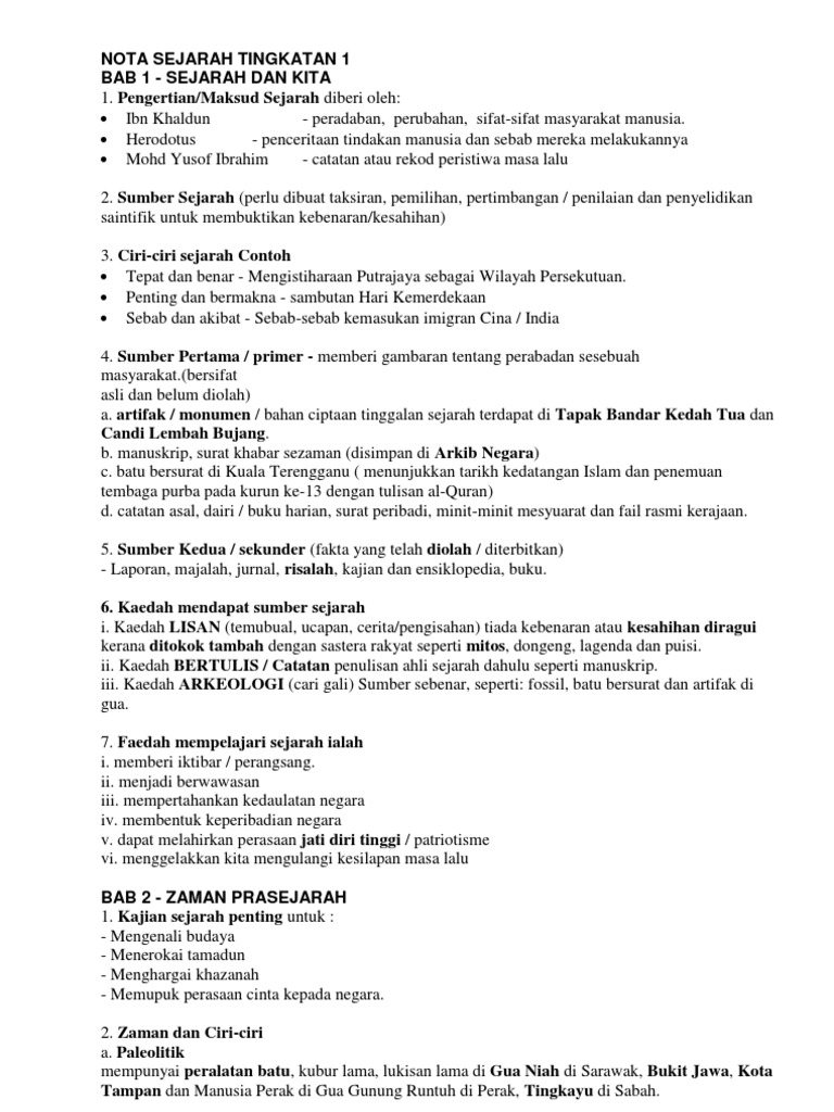 Nota Sejarah Tingkatan 1 Bab 1 Sejarah Dan Kita