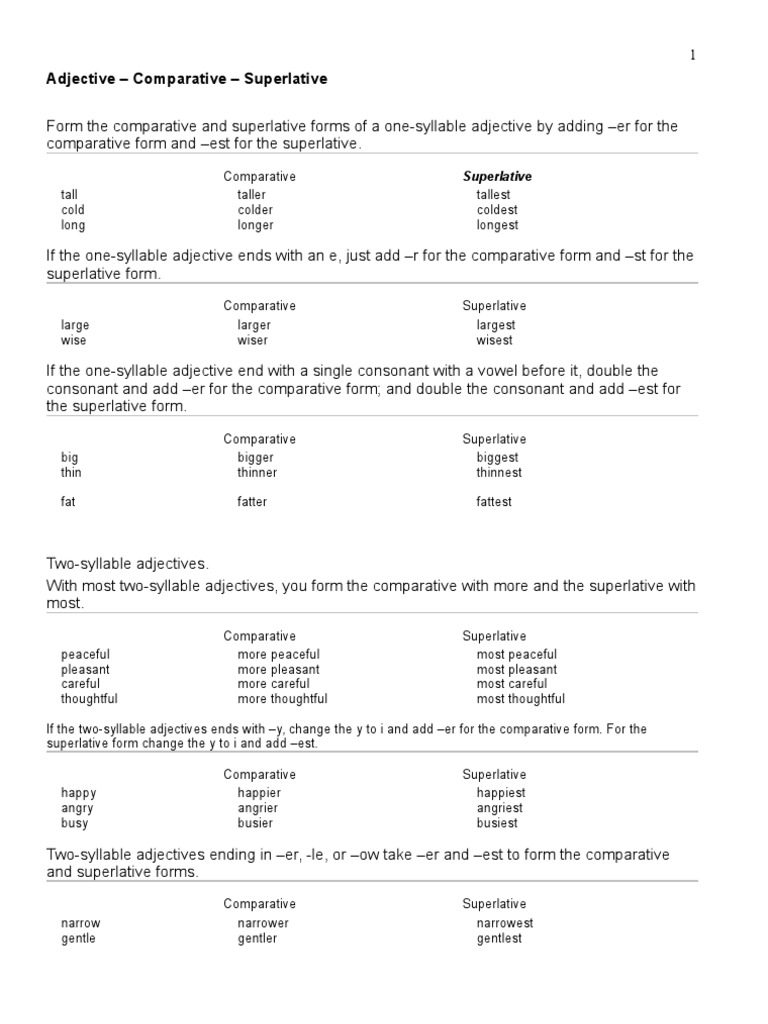 Adjectives Comparatives Superlatives General List Phonology Philology
