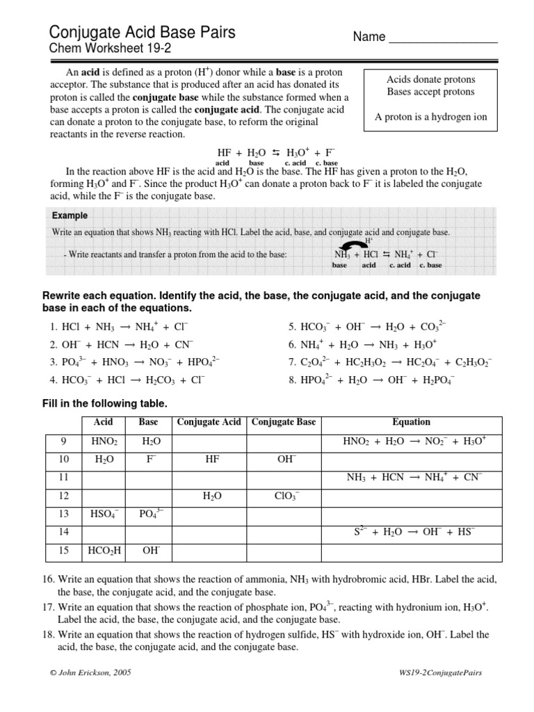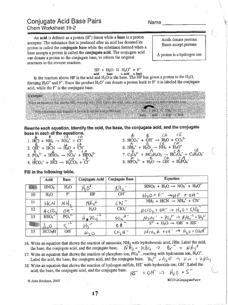Conjugate Acid Base Pairs Worksheet Answers Promotiontablecovers