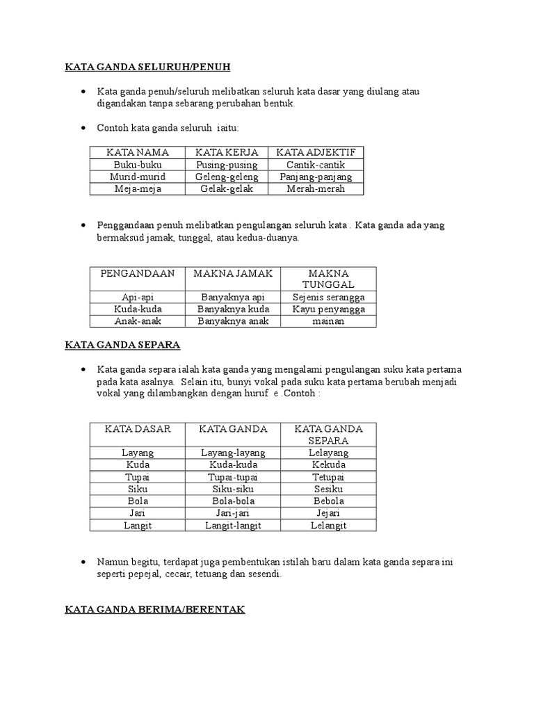 Contoh Kata Ganda Berentak Zona Ilmu 8