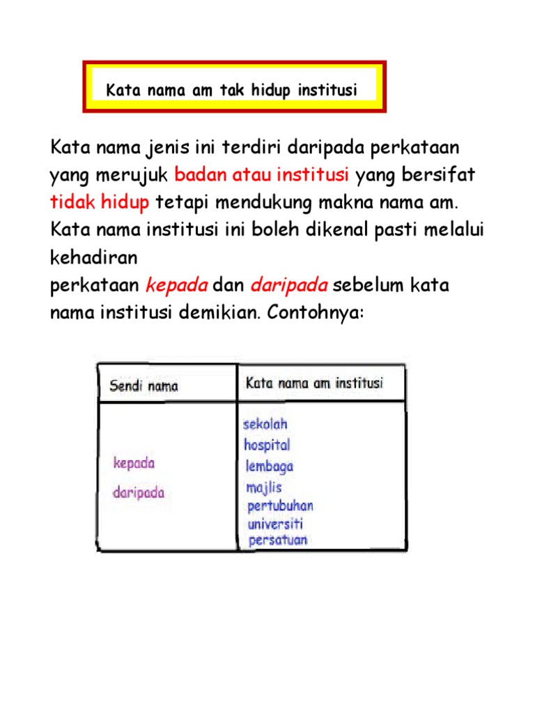 Kata Nama Am Tak Hidup Bukan Institusi
