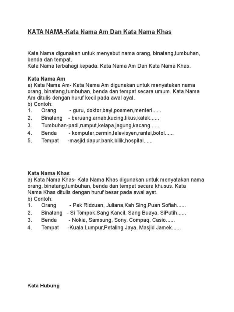Contoh Kata Nama Am Dan Kata Nama Khas Materi Pelajaran 1