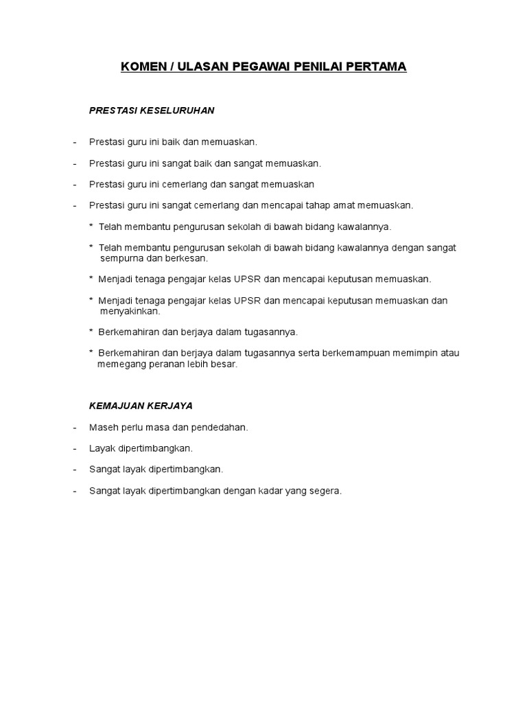 Ulasan Ppp Contoh Ayat Ulasan Penilaian Prestasi Kerja Pyd