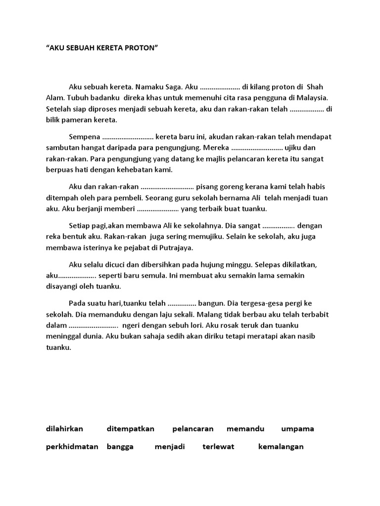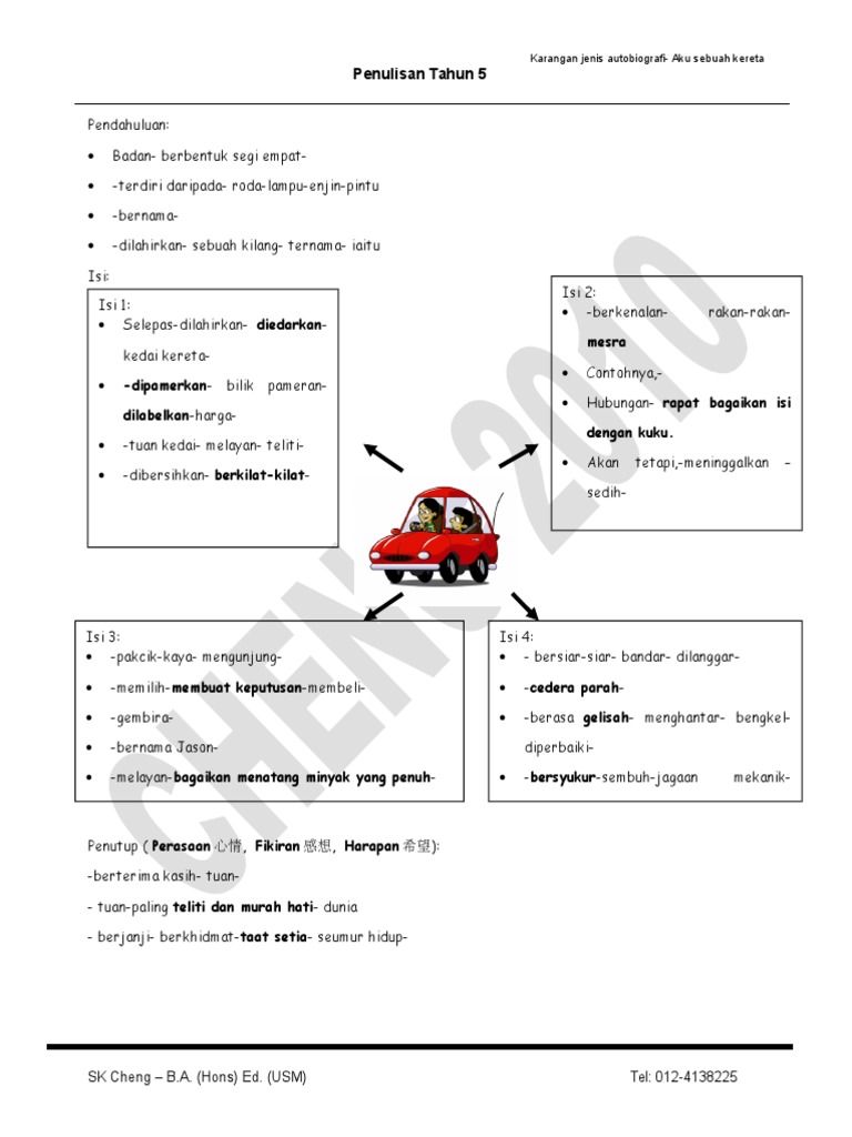 Contoh Karangan Sekolah Rendah Karangan Jenis Autobiografi Aku Sebuah Kereta