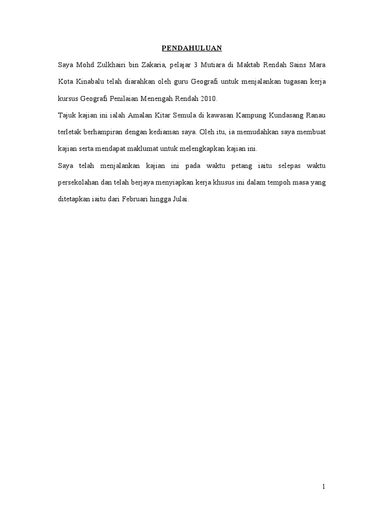 Contoh Kerja Kursus Geografi Tingkatan 3 Kitar Semula
