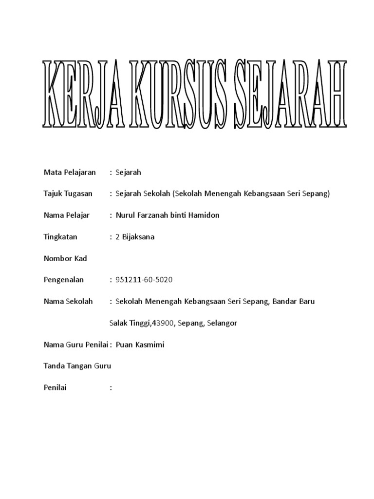 Kerja Kursus Sejarah Tingkatan 1 2011