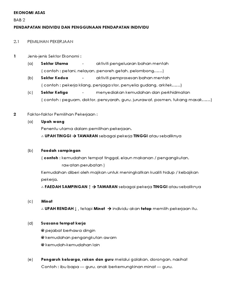 Contoh Soalan Ekonomi Tingkatan 4 Bab 2