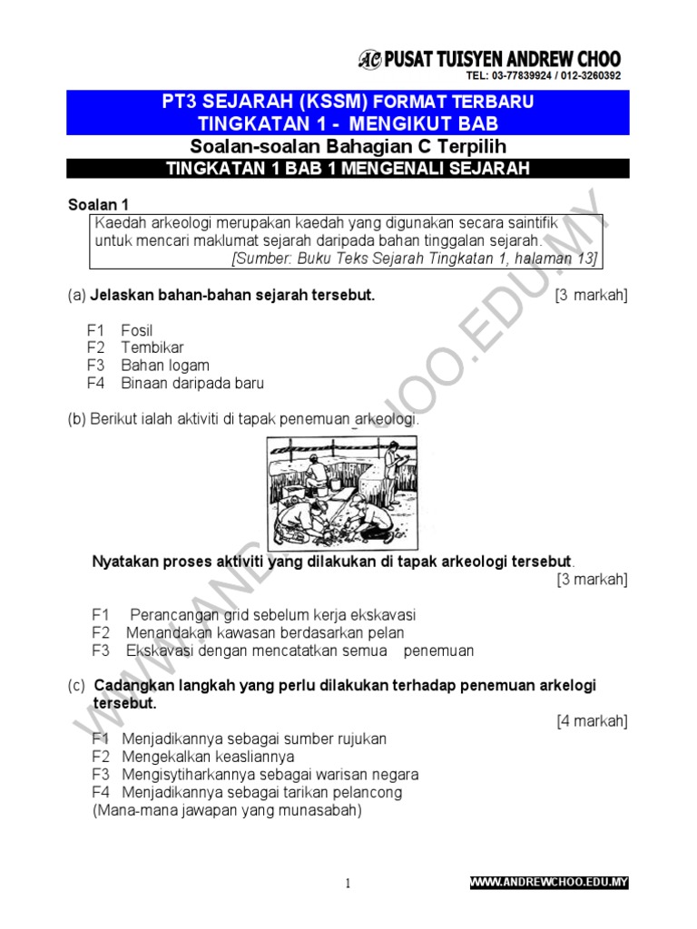 Tingkatan 1 Sejarah Contoh Soalan Bahagian C Kssm 2019