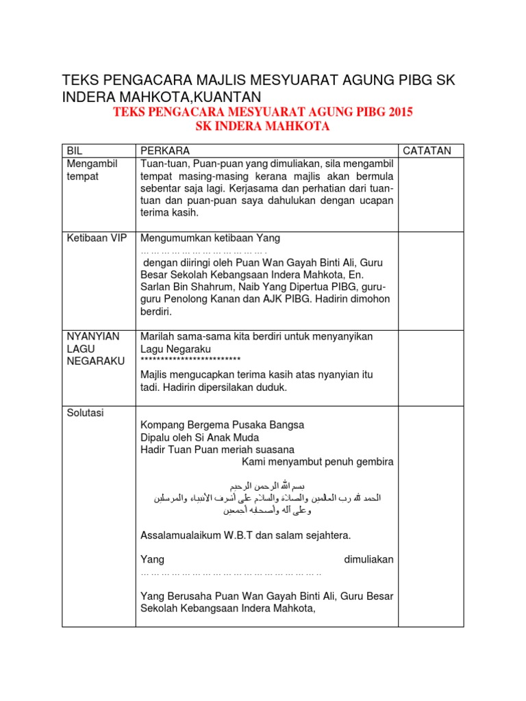 Contoh Teks Pengacara Majlis Mesyuarat Agung Pibg Sk Indera Mahkota