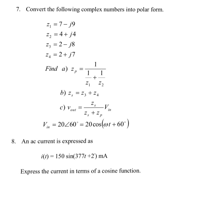Solved 7 Convert The Following Complex Numbers Into Pola Chegg Com