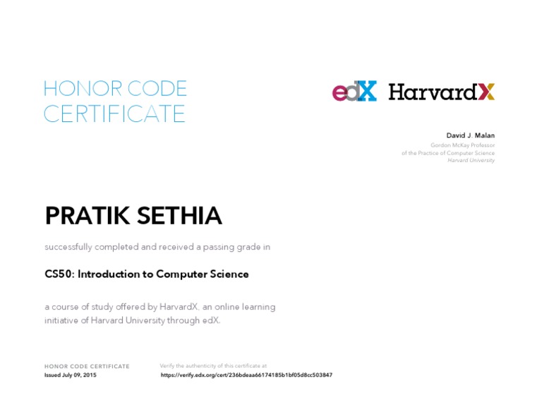 Harvardx Cs50 Certificate Edx