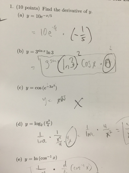 Solved Find The Derivative Of Y A Y 10 E X 5 B Y Chegg Com