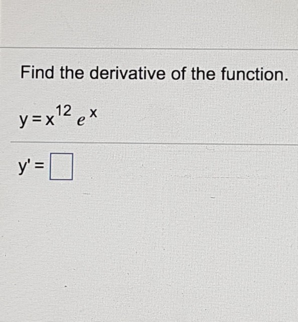 Solved Find The Derivative Of The Function Y X 12 E X Chegg Com