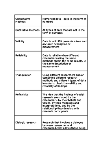 Research Methods Key Terms For A Level Sociology Revisesociology