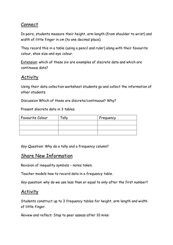 Simple Worksheet For Discrete Continuous Data Etc Teaching Resources