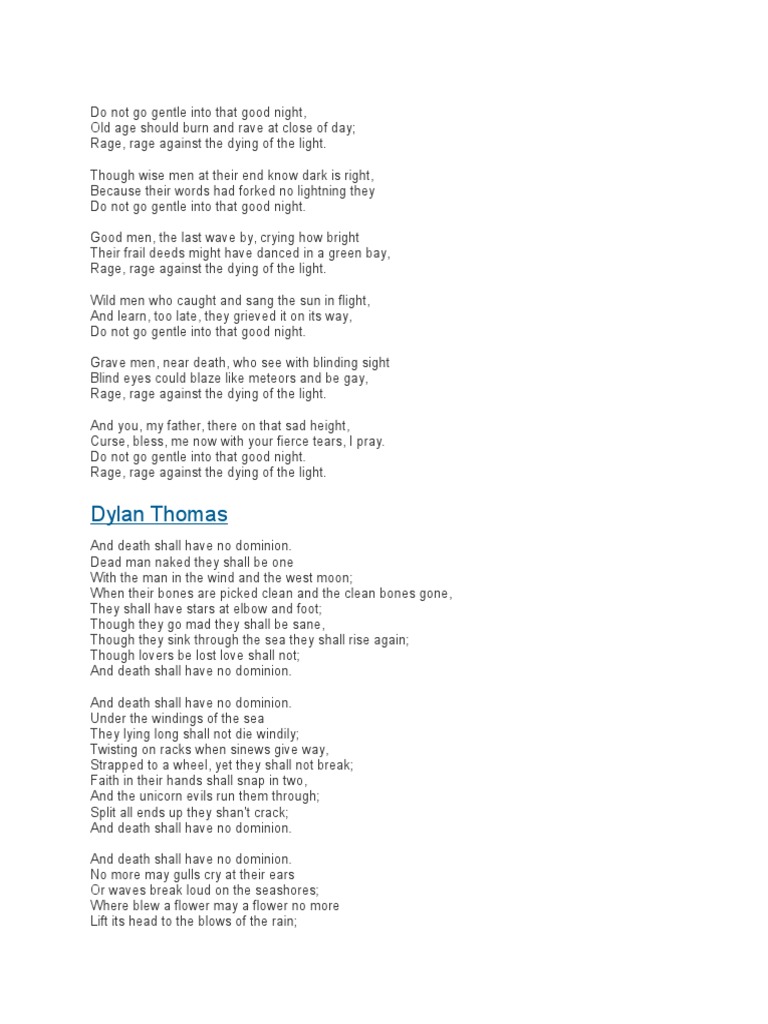 Do Not Go Gentle Into That Good Night Summary Enotes Com