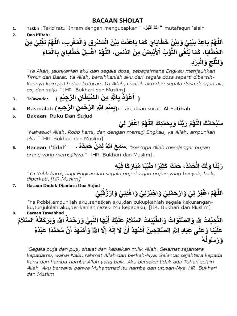 Bacaan Solat Per Kata