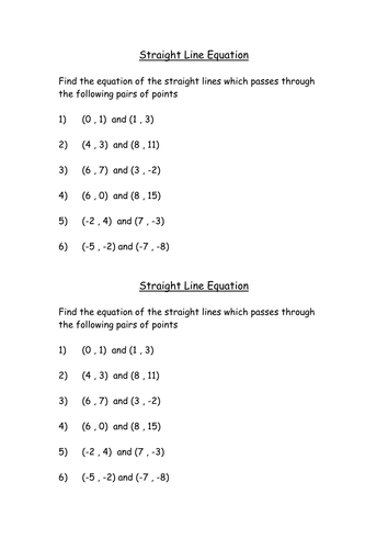 Equation Of A Straight Line Passing Through Two Points Worksheet With Solutions Payhip
