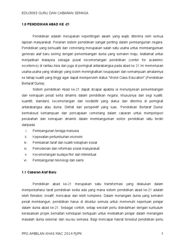 Edu 3093 Guru Dan Cabaran Semasa Pembelajaran Abad Ke 21