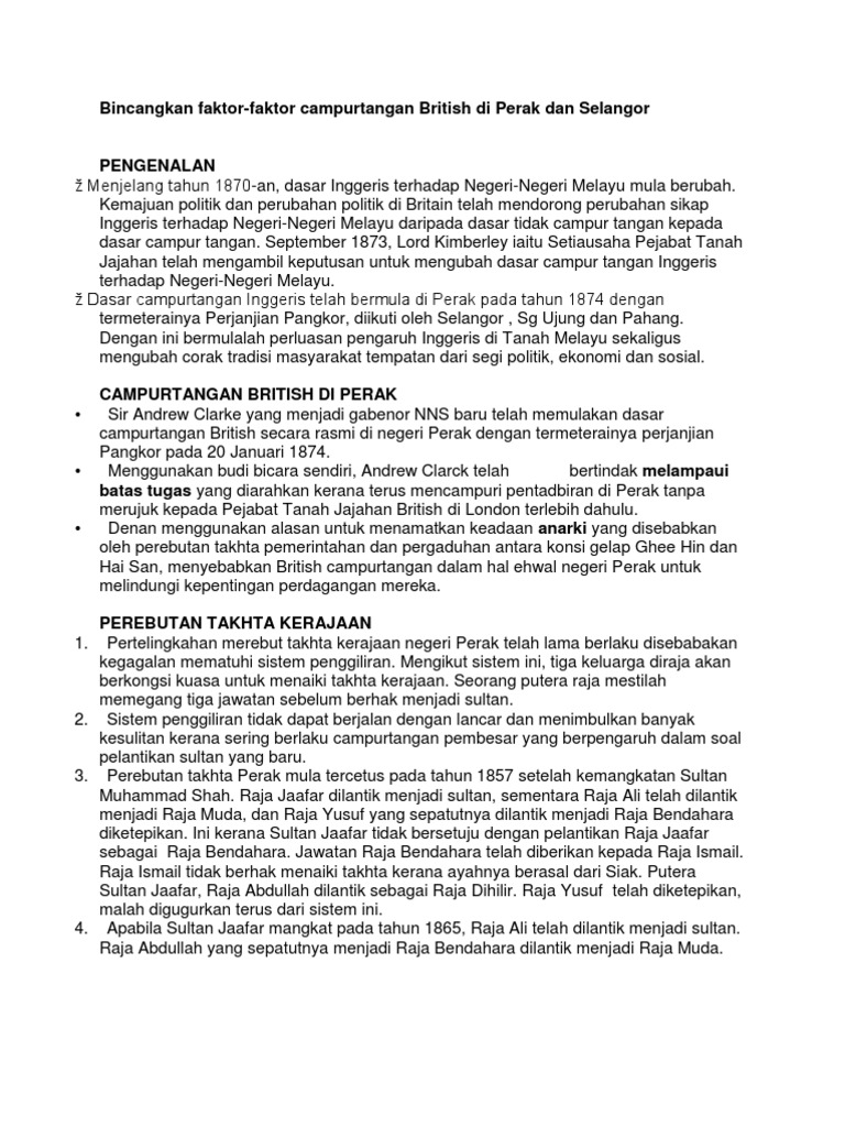 Bincangkan Faktor Faktor Campurtangan British Di Perak Dan Selangor