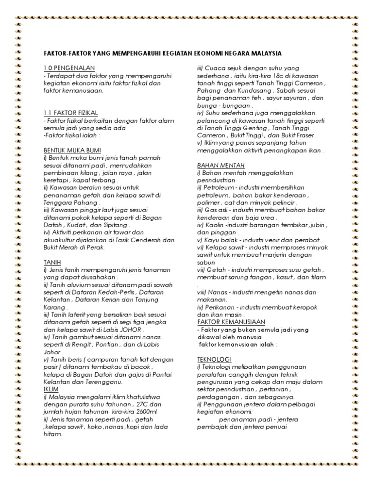 Petikan Teks Faktor Yang Mempengaruhi Kegiatan Ekonomi