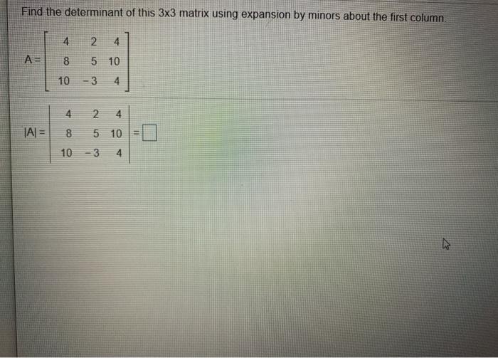 Solved Find The Determinant Of This 3x3 Matrix Using Expa Chegg Com